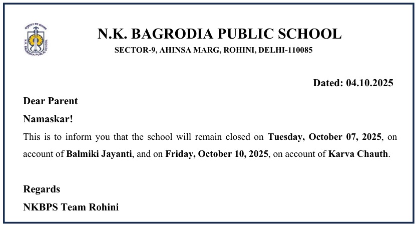 Holiday on account of Balmiki Jayanti & Karva Chauth