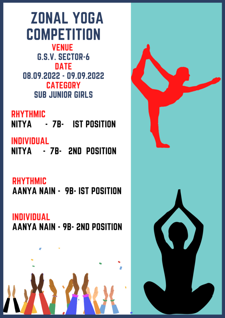 | DOE YOGA ZONAL COMPETITION | GIRLS | G.S.V. ,SECTOR-6, ROHINI | AANYA NAIN -11E NITYA MITTAL -9D | I POSITION |